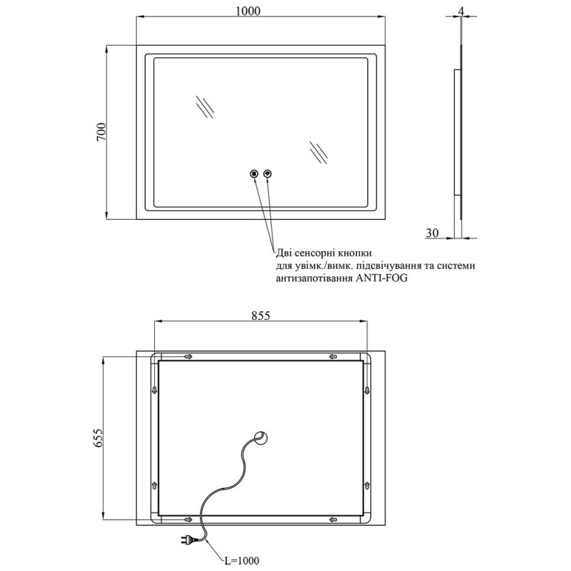 - ANTI-FOG - вбудована система проти запотівання, завдяки якій дзеркало залишається чистим навіть після гарячого душу.