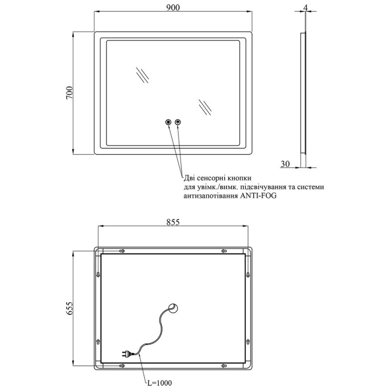- ANTI-FOG - вбудована система проти запотівання, завдяки якій дзеркало залишається чистим навіть після гарячого душу.