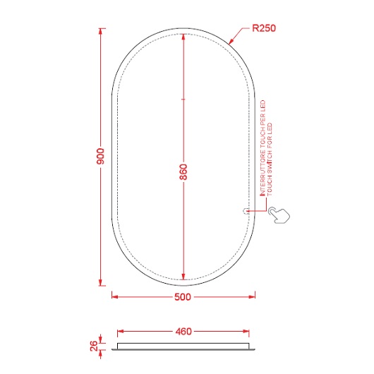 Дзеркало у ванну кімнату Artceram Arco 50х90 см з підсвічуванням
