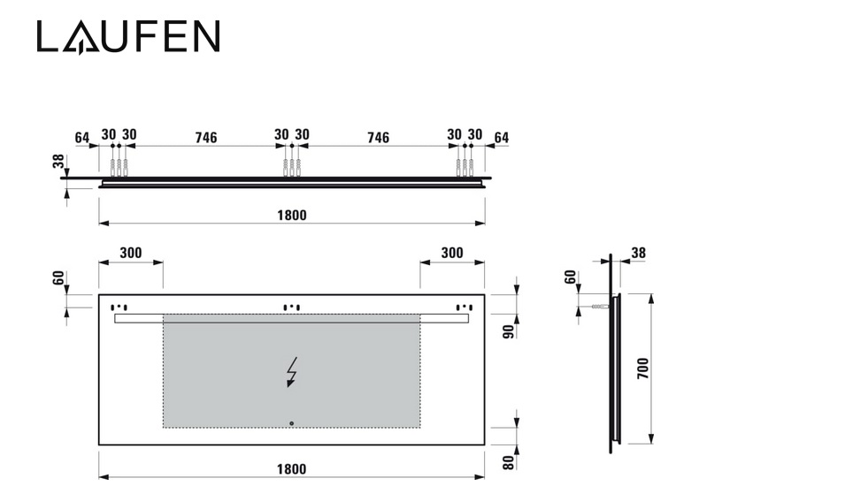 Дзеркало у ванну Laufen Leelo 180 см з LED-підсвічуванням 1 сенсорним вимикачем і функцією пам'яті