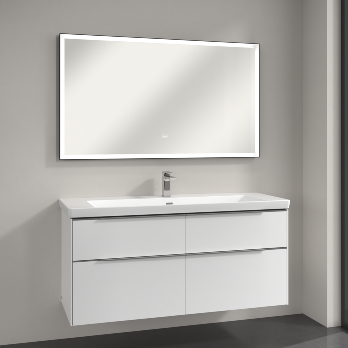 Підсвічування з плавним регулюванням світла для меблів для ванної. Завдяки меблів для ванної з вбудованим підсвічуванням Villeroy & Boch у вас у будь-якій ситуації буде правильне світло. Підсвічування з енергозберігаючими світлодіодними лампами та плавним регулюванням світла може змінюватися за допомогою дистанційного керування від холодного до теплого.біле світло. Вишукані елементи підсвічування створюють відповідний настрій у ванній кімнаті.