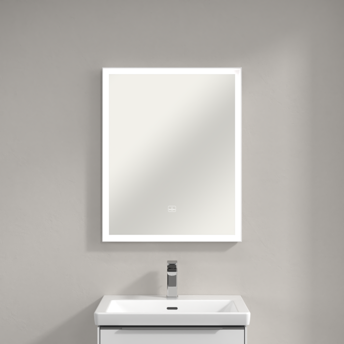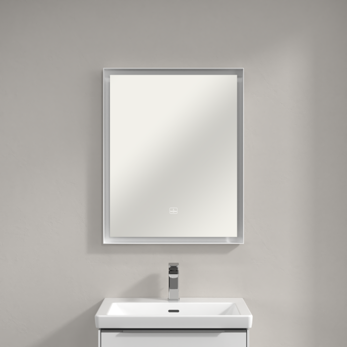 Дзеркало у ванну кімнату Villeroy & Boch Subway 3.0 60х75 см з підсвічуванням алюміній білий матовий