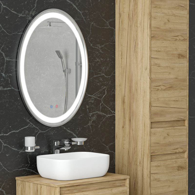 Дзеркало у ванну кімнату Volle 60х80 см з підсвічуванням диммером і підігрівом брашірованний нікель