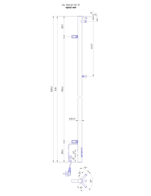Електрична рушникосушарка Mario Рей-І 1500x30/130 TR чорний мат 4820258982936