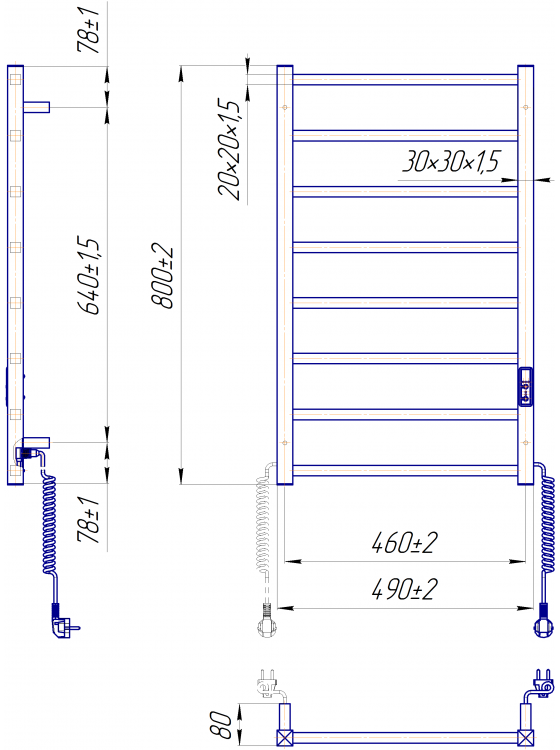 Електричний рушник Mario Tokyo-I 800x500/80 TR Чорний килимок