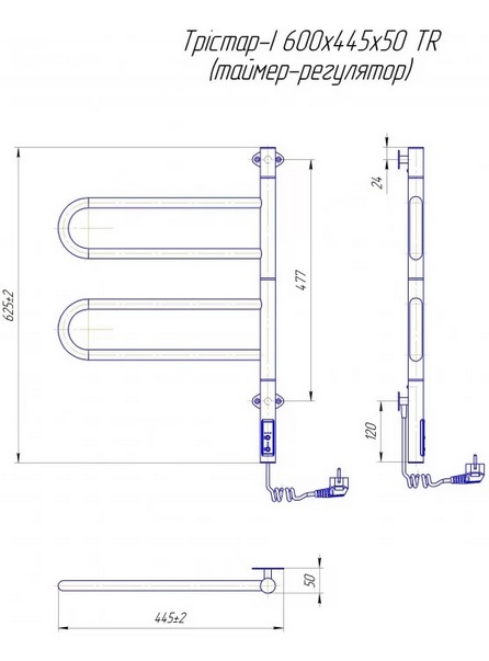 Електрична рушникосушарка Mario Трістар-I 600х445 TR таймер-регулятор чорний мат 4820258983032