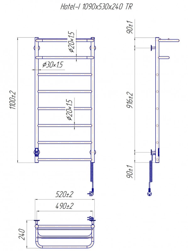 Електричний полотенцесушитель Mario Hotel-I TR 1090х530 / 240 праве підключення