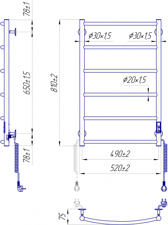 Електрична рушникосушка Mario Класік HP-I 800x530 TR K чорний мат 4820111357277