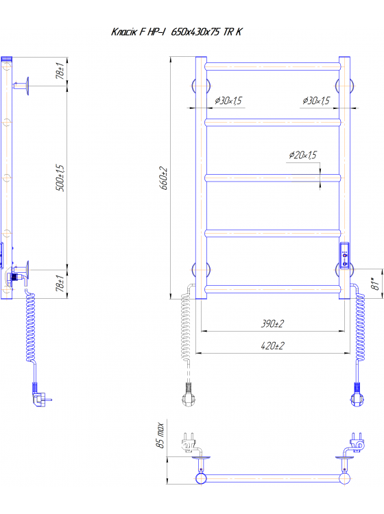 Електрична рушникосушка Mario Класік F HP -I 650x430 TR K чорний мат 4820111357598