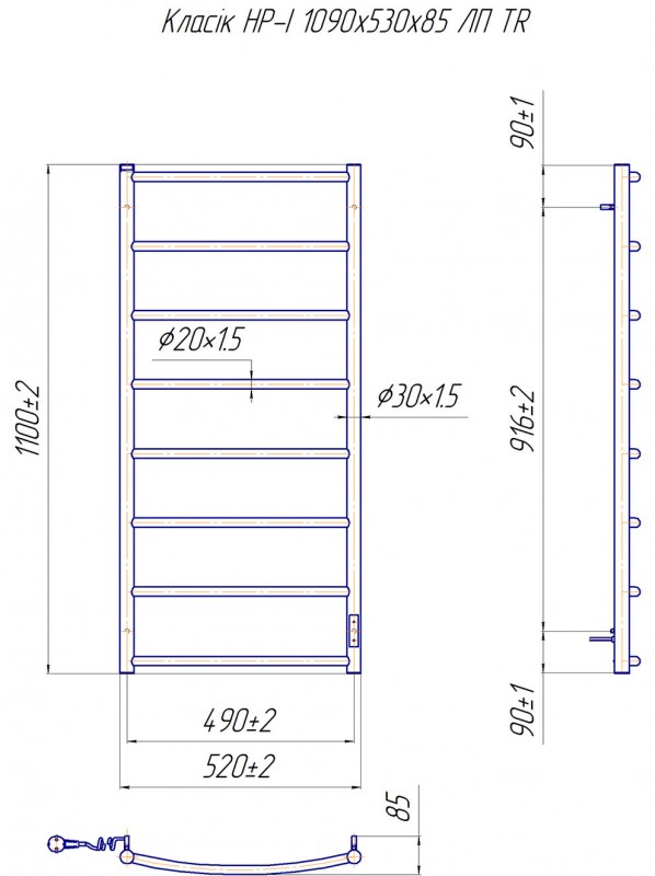 Електричний полотенцесушитель Mario Класик HP-I TR 1090x530 / 85 ліве підключення