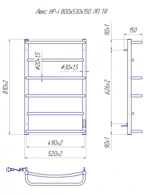 Електричний полотенцесушитель Mario Люкс HP-I TR 800x530 / 150 ліве підключення