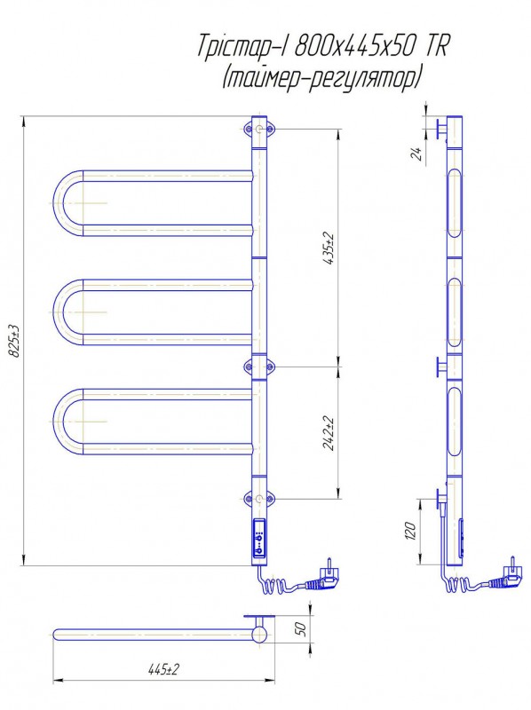 Електричний полотенцесушитель Mario Трістар-I TR 800х445 / 55