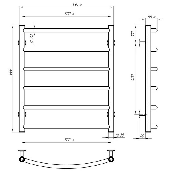 Електрична сушарка для рушників Deffi Класик П6 500х600 праве підключення хром C.DK.60.50.6.E.C.R.5