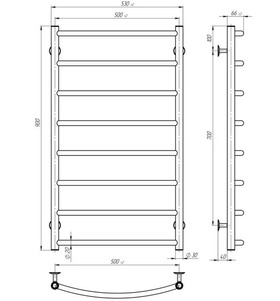 Електрична сушарка для рушників Deffi Класик П8 500х900 ліве підключення хром C.DK.90.50.8.E.C.L.5