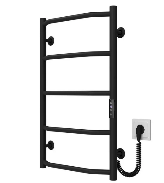 Електрична сушарка для рушників Deffi Трапеція П5 400х700 правильне підключення JD03 чорний C.TR.70.40.5.E.B.R.1