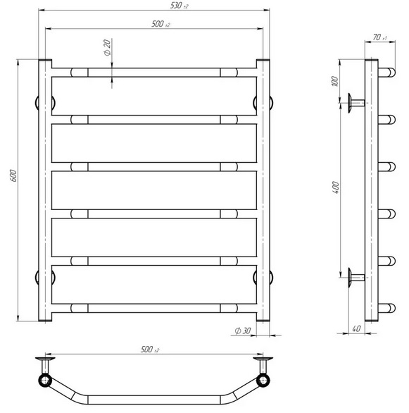 Електрична сушарка для рушників Deffi Трапеція П6 500х600 ліве підключення хром C.TR.60.50.6.E.C.L.5