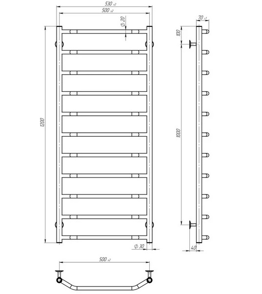 Електричний сушки для рушників призначений для сушіння рушників та інших текстильних виробів у домашніх умовах. Він виготовлений із полірованої нержавіючої сталі, яка забезпечує максимально ефективнутепловіддачу.