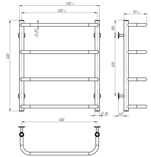 Електрична сушарка для рушників Deffi Стандарт П4 500х600 ліве підключення JD03 хром C.SS.60.50.4.E.C.L.1