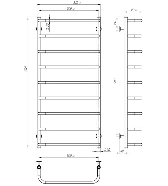 Електрична сушарка для рушників Deffi Стандарт П9 500х1100 ліве підключення WD03 білий C.SS.110.50.9.E.W.L.3