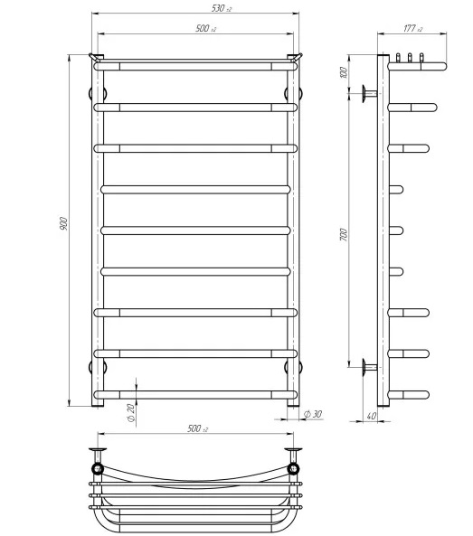 Електрична сушарка для рушників Deffi Юність П9 500х900 правильне підключення JD03 чорний C.YU.90.50.9.E.B.R.1