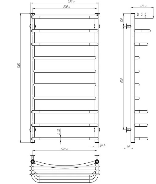 Електрична сушарка для рушників Deffi Юність П10 500х1000 ліве підключення WD03 білий C.YU.100.50.10.E.W.L.3