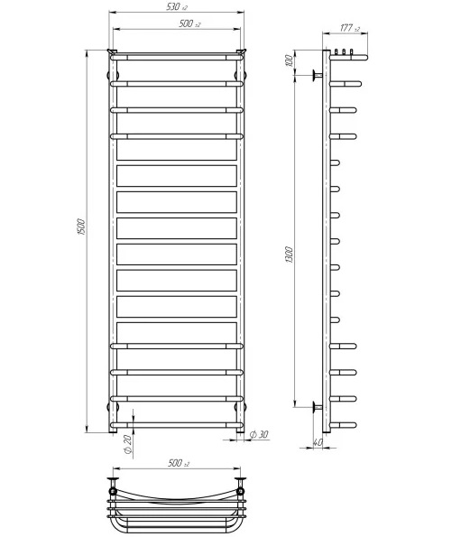 Електрична сушарка для рушників Deffi Юність П15 500х1500 праве підключення хром C.YU.150.50.15.E.C.R.5