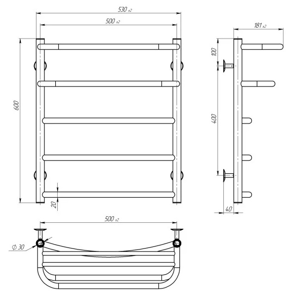 Електрична сушарка для рушників Deffi Готель П5 500х600 ліве підключення JD03 чорний C.OD.60.50.5.E.B.L.1
