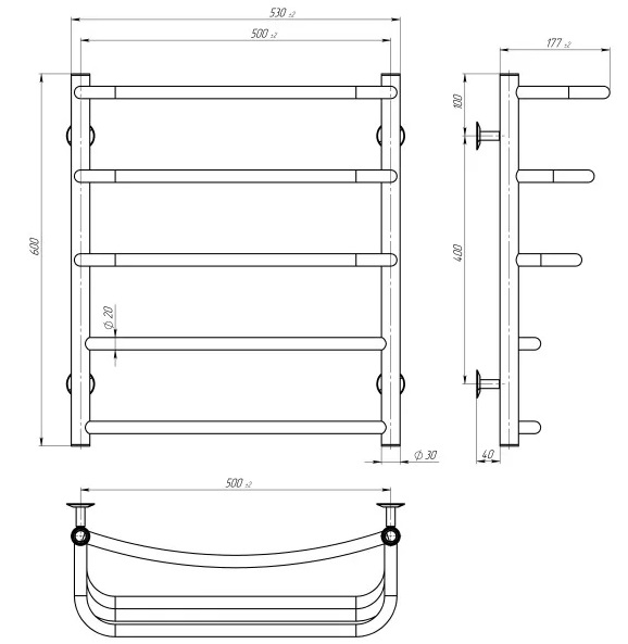 Електрична сушарка для рушників Deffi Каскад Дуга П5 500х600 ліве підключення білий C.KD.60.50.5.E.W.L.5