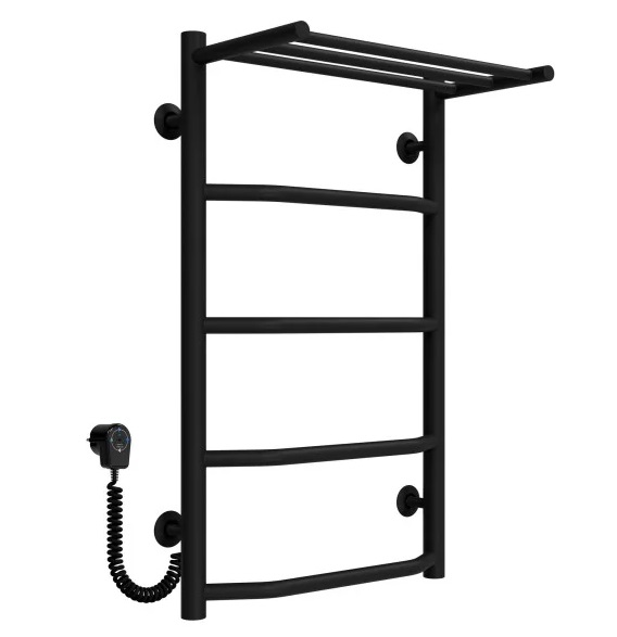 Електрична сушарка для рушників Deffi Трапеція з полицею П5 400х700 ліве підключення чорний C.TP.70.40.5.E.B.L.5