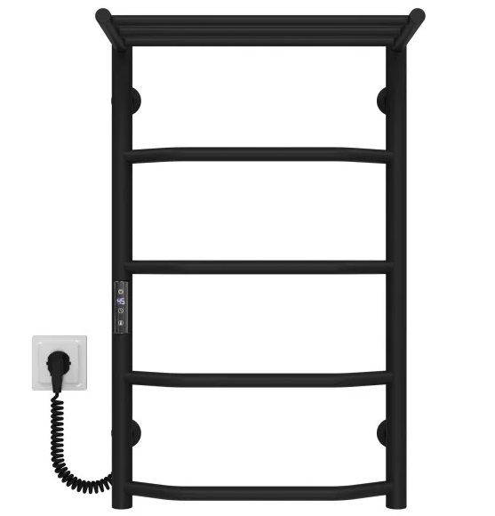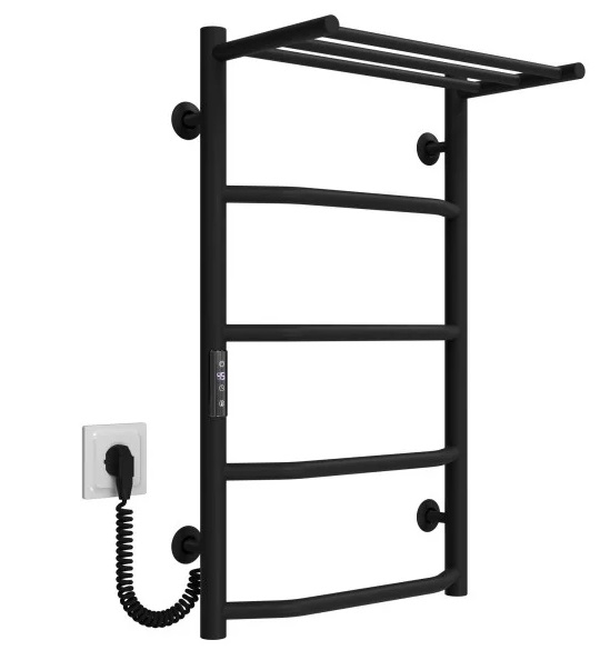 Електрична сушарка для рушників Deffi Трапеція з полицею П5 400х700 ліве підключення JD03 чорний C.TP.70.40.5.E.B.L.1