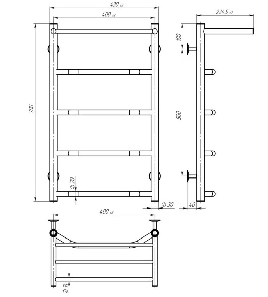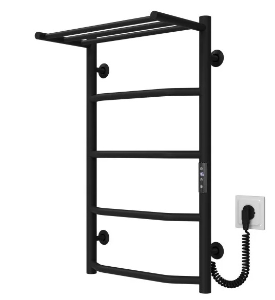 Електрична сушарка для рушників Deffi Трапеція з полицею П5 400х700 праве підключення JD03 чорний C.TP.70.40.5.E.B.R.1