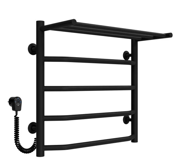 Електрична сушарка для рушників Deffi Трапеція з полицею П5 500х500 ліве підключення чорний C.TP.50.50.5.E.B.L.5