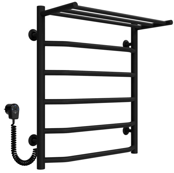 Електрична сушарка для рушників Deffi Трапеція з полицею П6 500х600 ліве підключення чорний C.TP.60.50.6.E.B.L.5