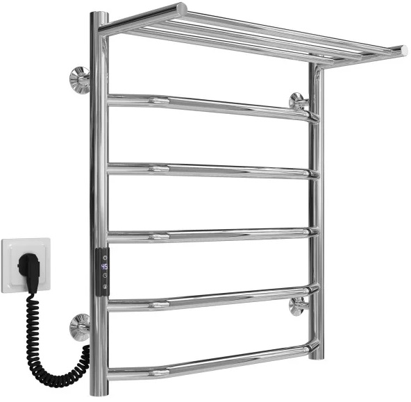 Електрична сушарка для рушників Deffi Трапеція з полицею П6 500х600 ліве підключення JD03 хром C.TP.60.50.6.E.C.L.1