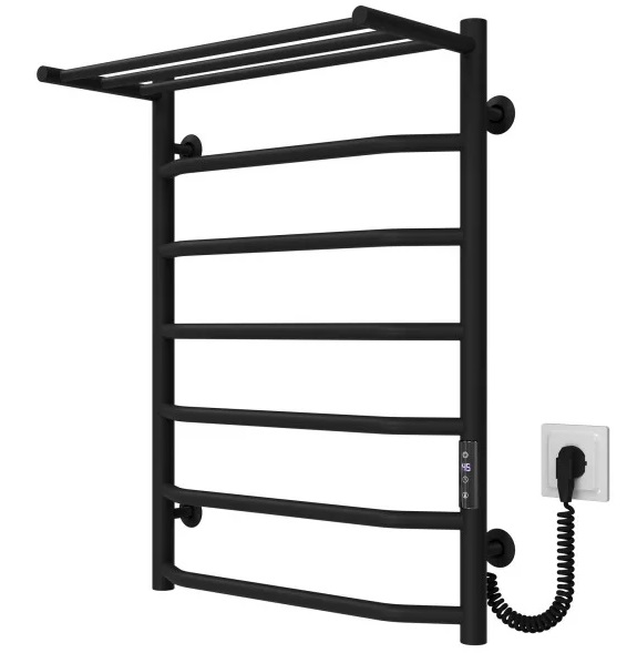 Електрична сушарка для рушників Deffi Трапеція з полицею П7 500х700 правильне підключення JD03 чорний C.TP.70.50.7.E.B.R.1