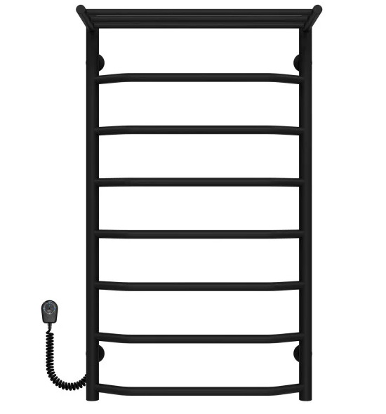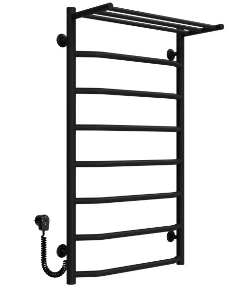 Електрична сушарка для рушників Deffi Трапеція з полицею П8 500х900 ліве підключення чорний C.TP.90.50.8.E.B.L.5