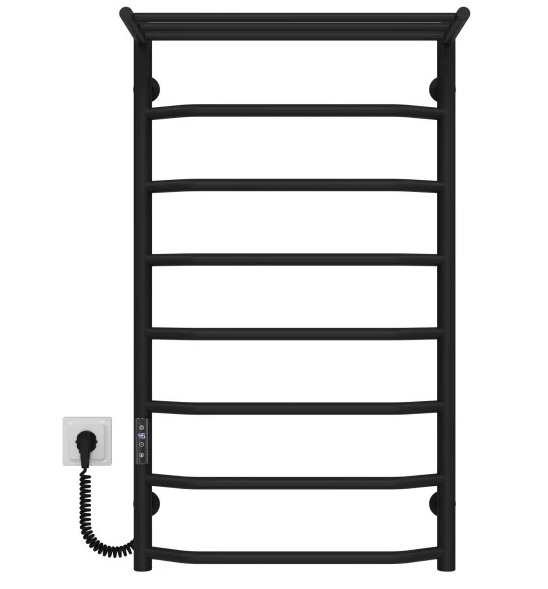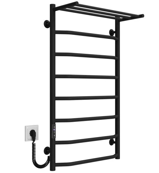 Електрична сушарка для рушників Deffi Трапеція з полицею П8 500х900 ліве підключення JD03 чорний C.TP.90.50.8.E.B.L.1