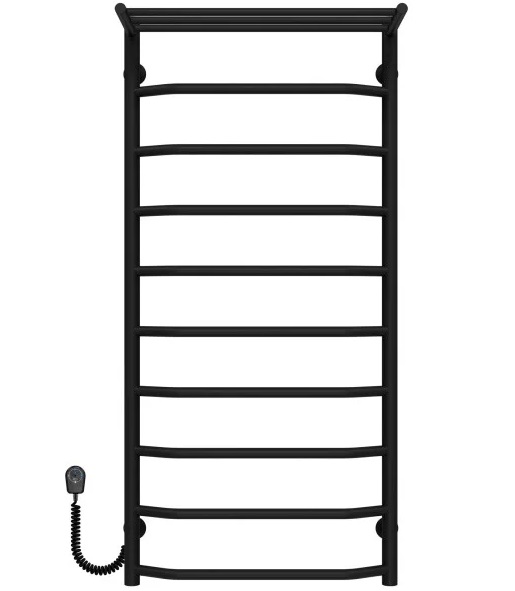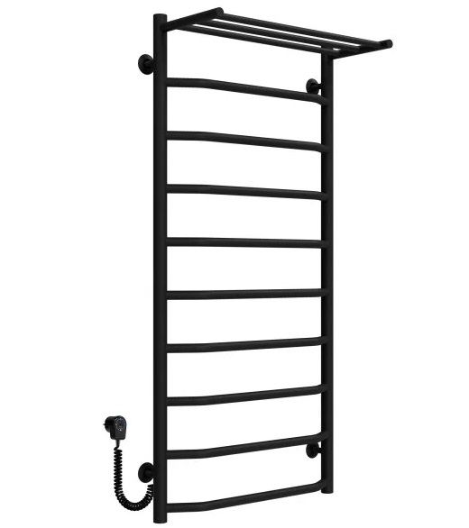 Електрична сушарка для рушників Deffi Трапеція з полицею П10 500х1100 ліве підключення чорний C.TP.110.50.10.E.B.L.5