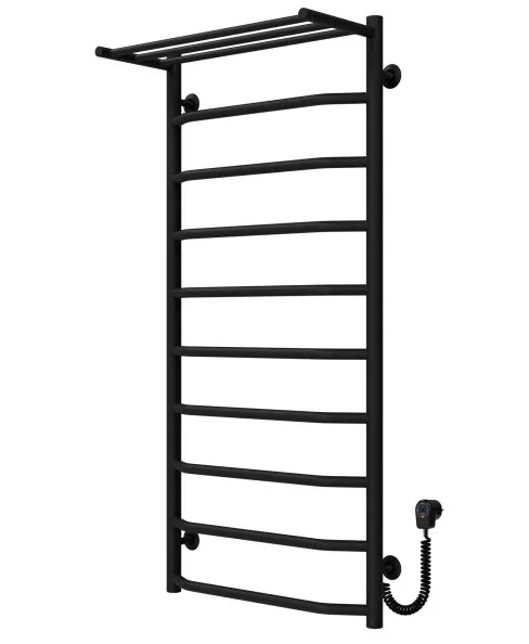 Електрична сушарка для рушників Deffi Трапеція з полицею П10 500х1100 правильне підключення чорний C.TP.110.50.10.E.B.R.5