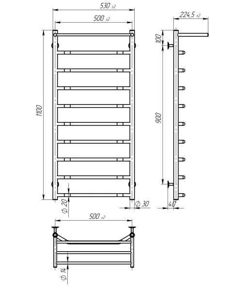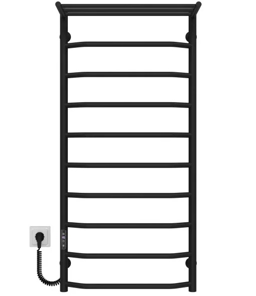 Електрична сушарка для рушників Deffi Трапеція з полицею П10 500х1100 ліве підключення JD03 чорний C.TP.110.50.10.E.B.L.1