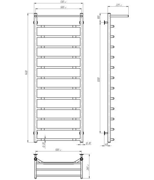 Електрична сушарка для рушників Deffi Трапеція з полицею П13 500х1400 ліве підключення хром C.TP.140.50.13.E.C.L.5