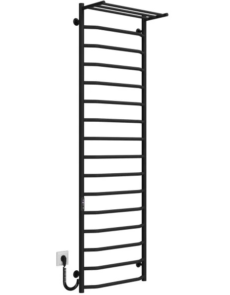 Електрична сушарка для рушників Deffi Трапеція з полицею П16 500х1700 ліве підключення JD03 чорний C.TP.170.50.16.E.B.L.1