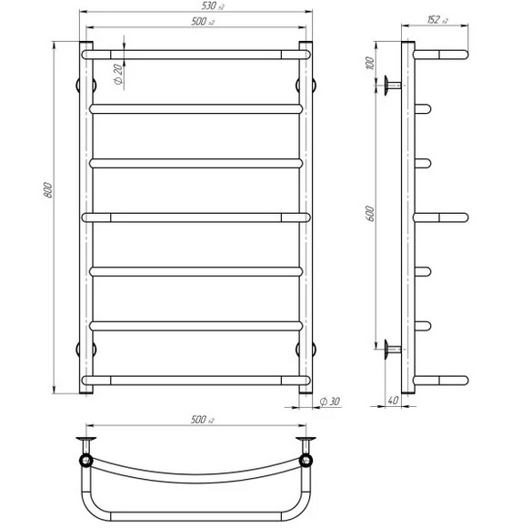 Електрична сушарка для рушників Deffi Аквамікс П7 500х800 праве підключення хром C.AM.80.50.7.E.C.R.5