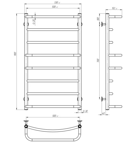 Електрична сушарка для рушників Deffi Аквамікс П8 500х900 ліве підключення білий C.AM.90.50.8.E.W.L.5