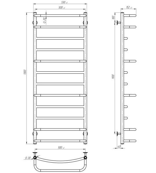 Електрична сушарка для рушників Deffi Аквамікс П12 500х1300 праве підключення хром C.AM.130.50.12.E.C.R.5