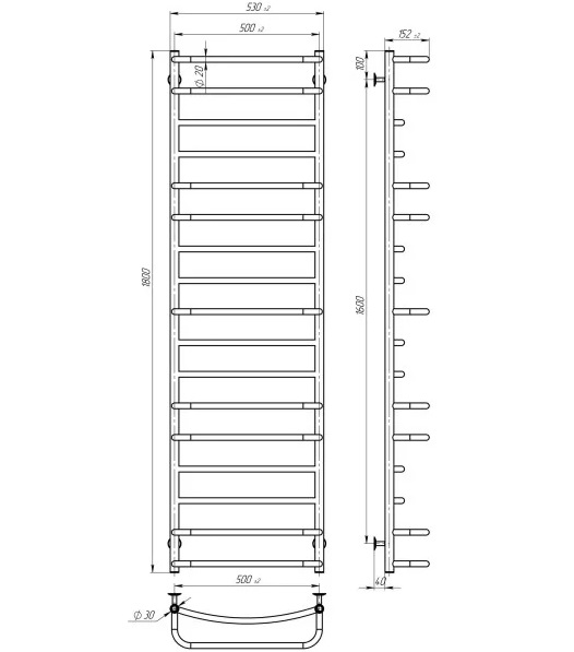 Електрична сушарка для рушників Deffi Аквамікс П17 500х1800 ліве підключення білий C.AM.180.50.17.E.W.L.5
