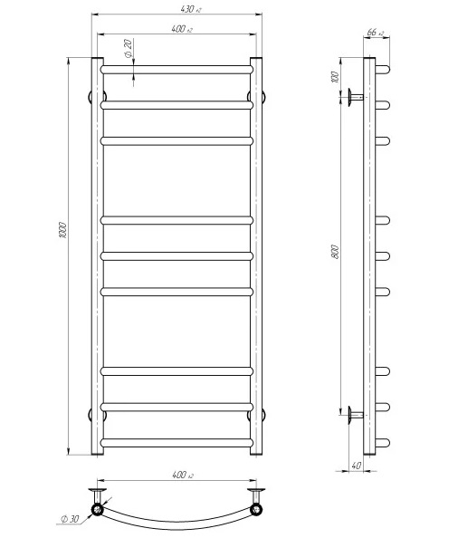 Електрична сушарка для рушників Deffi Класик Еліт П9 400х800 ліве підключення хром C.KE.100.40.9.E.C.L.5