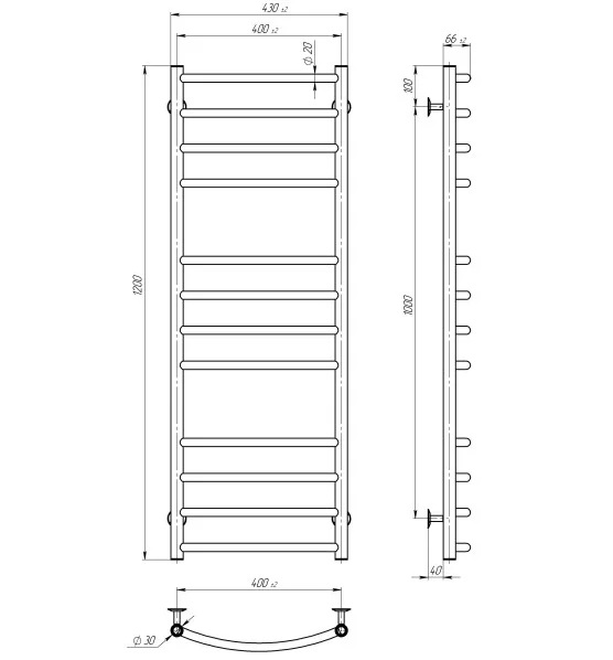 Електрична сушарка для рушників Deffi Класик Еліт П12 400х1200 праве підключення чорний C.KE.120.40.12.E.B.R.5