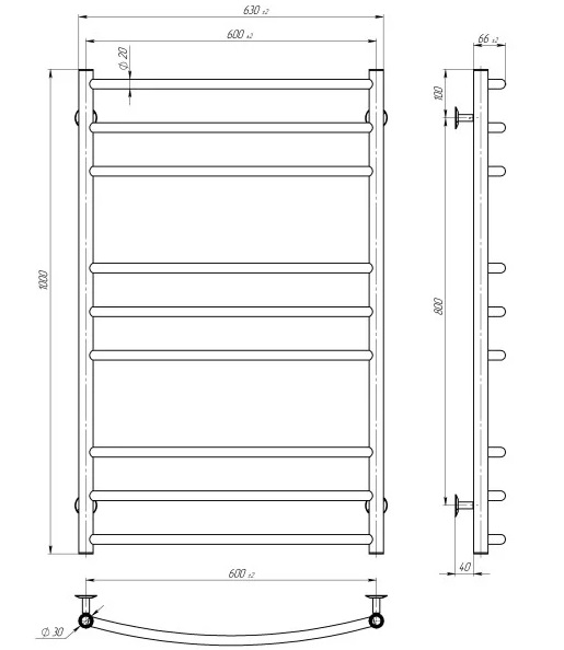Електрична сушарка для рушників Deffi Класик Еліт П9 600х1000 ліве підключення хром C.KE.100.60.9.E.C.L.5