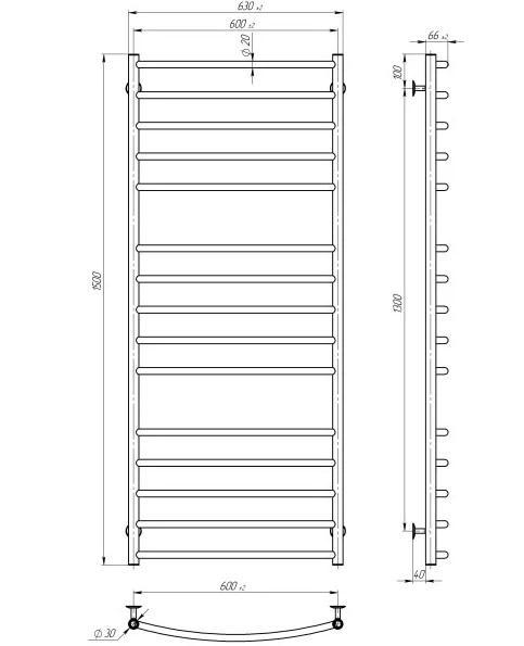 Електрична сушарка для рушників Deffi Класик Еліт П15 600х1500 праве підключення JD03 чорний C.KE.150.60.15.E.B.R.1